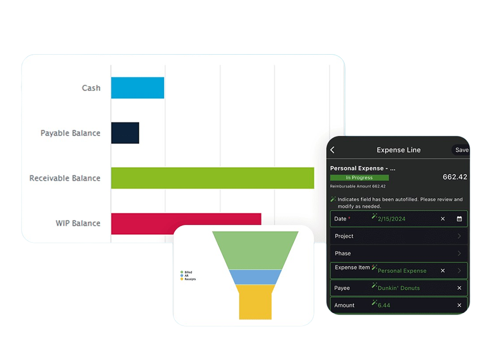 Gain full control over your firm’s financials with integrated accounting, including GL, AP/AR, and project costing.